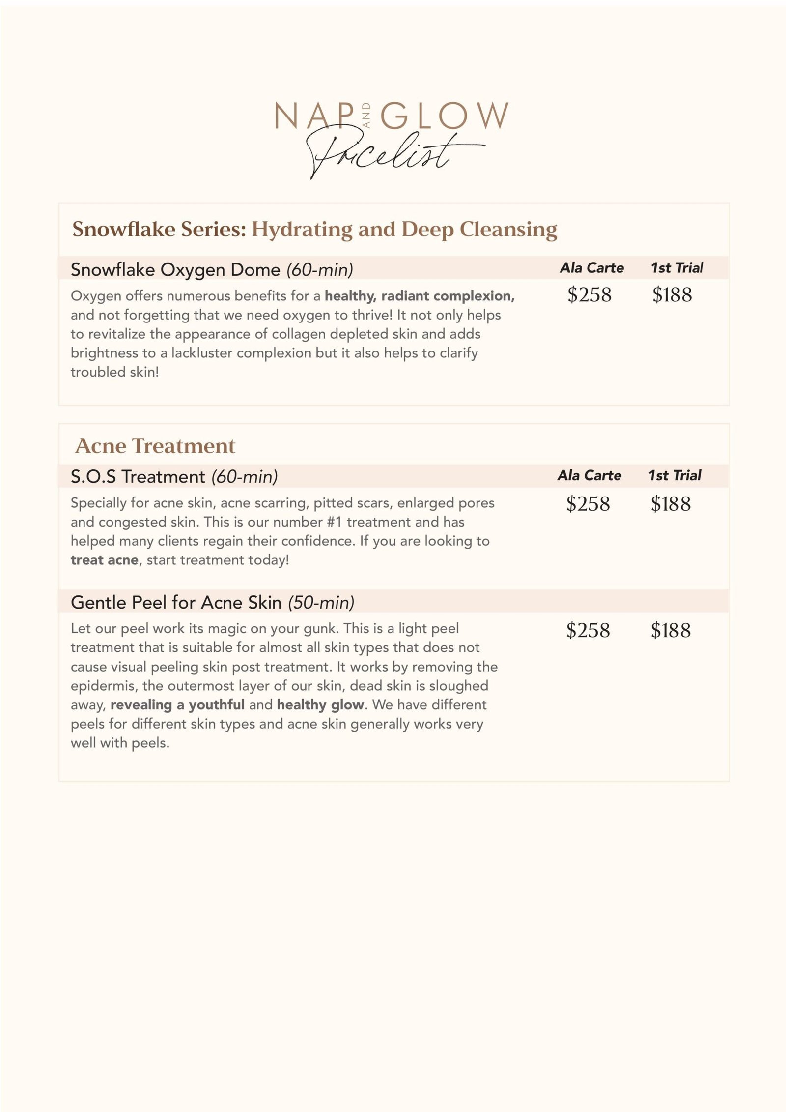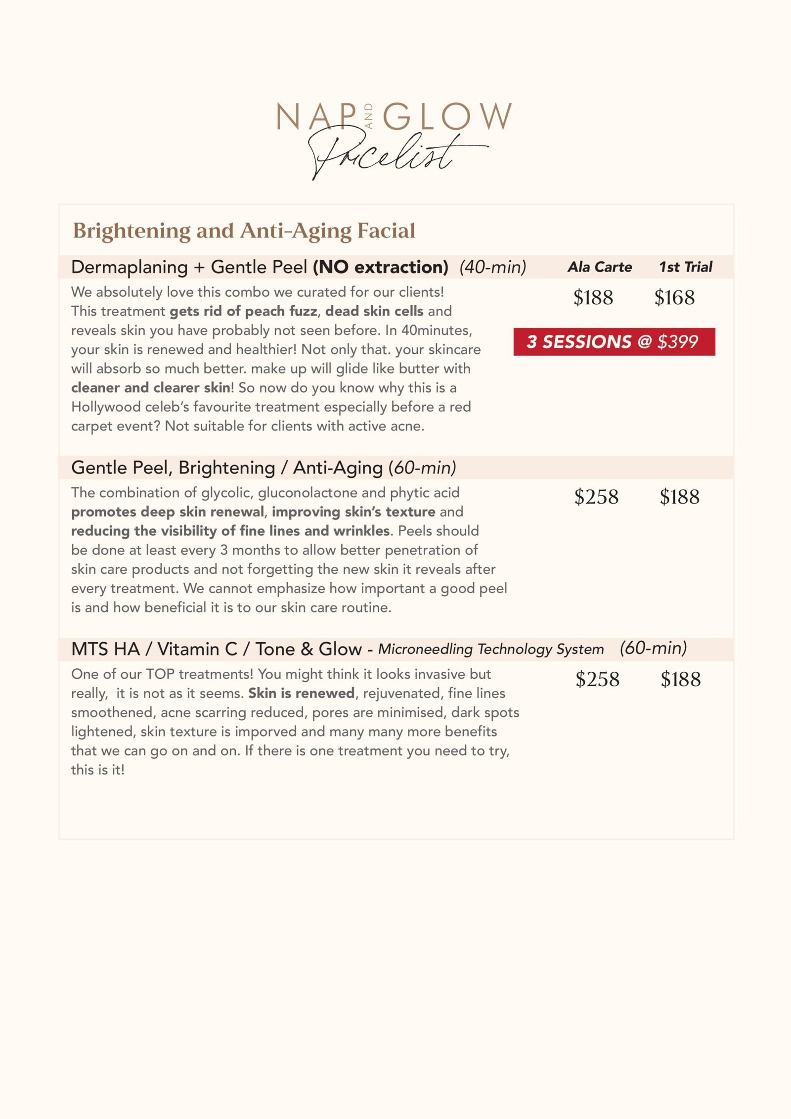 These cutting-edge technologies, combined with quality products, mean we can deliver pain-free treatments. Nap and Glow high standards of maintenance, hygiene, and staff training ensure our clients’ best possible experience and outcomes.